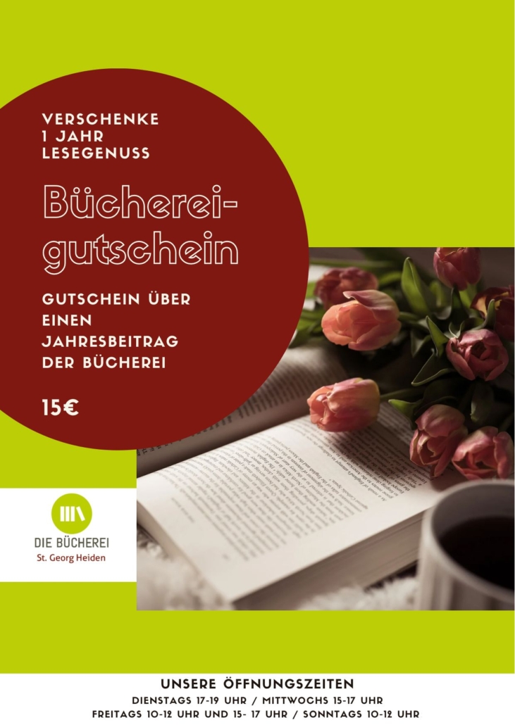 Verschenke ein Jahr Lese- und Hörgenuss mit einem Gutschein über einen Jahresbeitrag der Bücherei.